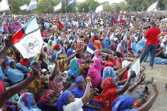 idadi ya watu wanaohudhuria mikutano hiyo. Pichani mfuasi wa UKAWA,
