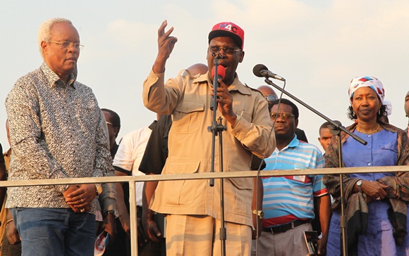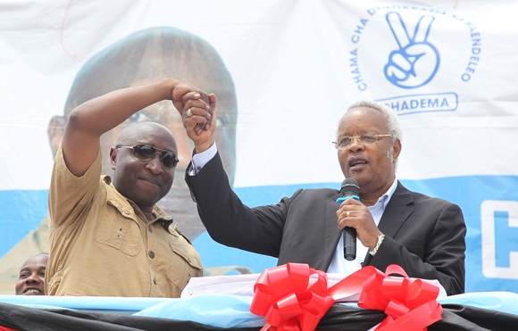 Mh Edward Lowassa akimnadi mgombea ubunge wa Jimbo la Kibamba ambaye pia ni Naibu katibu mkuu wa Chadema Bara Mh John Mnyika katika mkutano uliofanyika jimboni Kibamba.