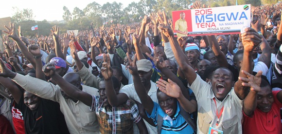 Baadhi ya wananchi wa Mji wa Kigoma Kusini, wakionyesha furaha yako kwa Mgombea Urais wa Jamhuri ya Muungani wa Tanzania katika mwamvuli wa UKAWA kupitia Chama cha Demokrasia na Maendeleo (CHADEMA), Mh. Edward Lowassa,wakati wa Mkutano wa hadhara wa Kampeni, uliofanyika kwenye Uwanja wa Nguruka Kati, leo Septemba 4, 2015.Picha na Othman Michuzi, Kigoma.