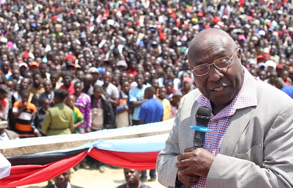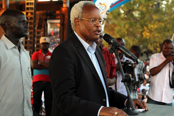 Waziri wa zamani wa Elimu, Mh. Joseph Mungai akihutubia kwenye Mkutano wa Kampeni za Mgombea Urais wa Jamhuri ya Muungani wa Tanzania katika mwamvuli wa UKAWA kupitia Chama cha Demokrasia na Maendeleo (CHADEMA), Mh. Edward Lowassa, uliofanyika kwenye Uwanja wa Wambi, Mafinga Mjini, Mkoani Iringa leo Agosti 30, 2015.