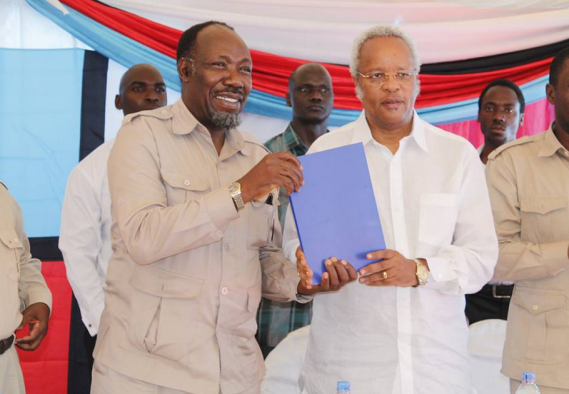 Makamu Mwenyekiti akipokea fomu kutoka kwa Waziri Mkuu Mstaafu na aliiyekuwa mbunge wa Monduli kwa tikeki ya CCM Mh. Edward Lowassa