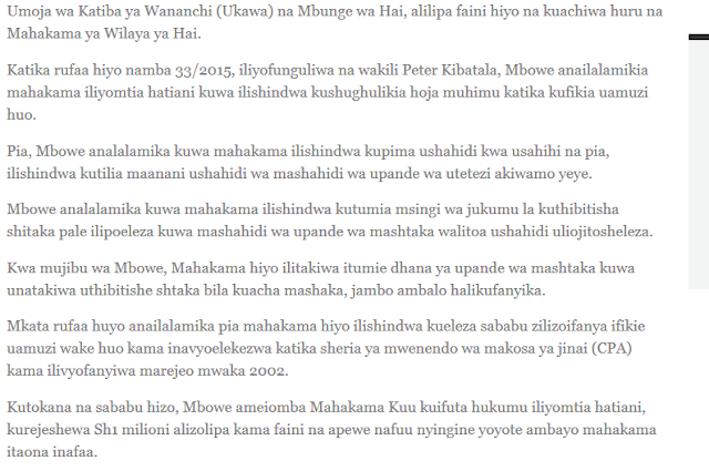 Mbowe akata rufaa mahakama kuu dhidi ya hukumu yake