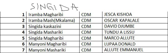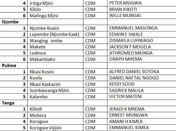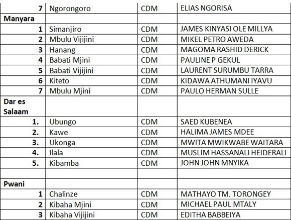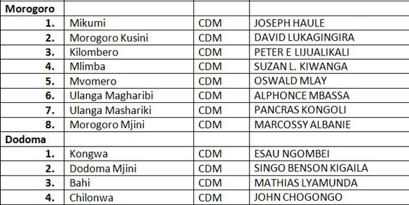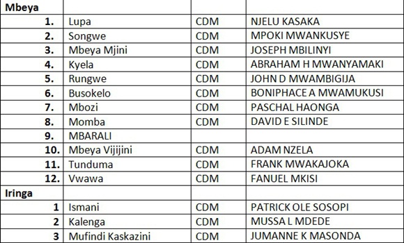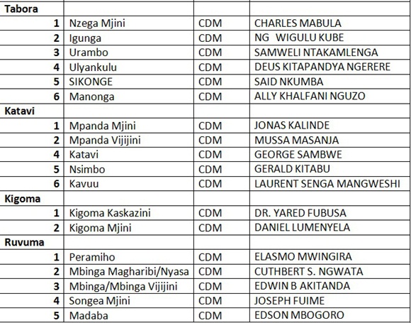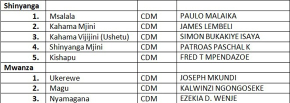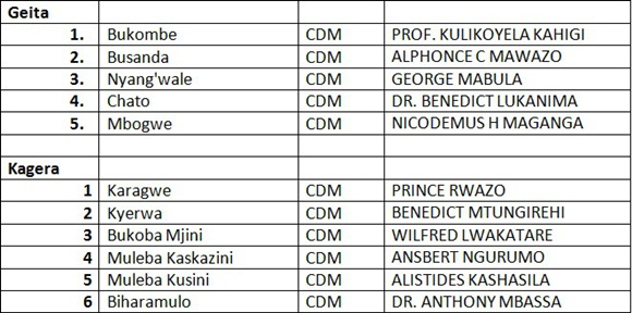 ORODHA YA MAJINA YA WANACHAMA WA CHADEMA WALIOTEULIWA KUGOMBEA UBUNGE