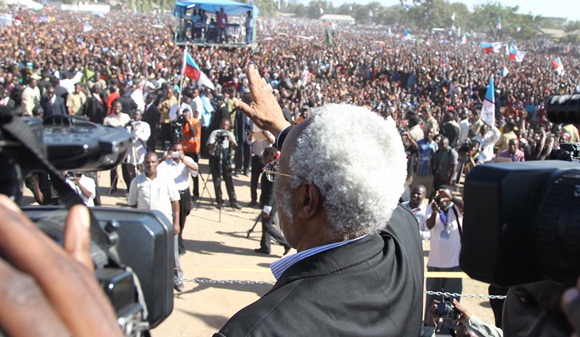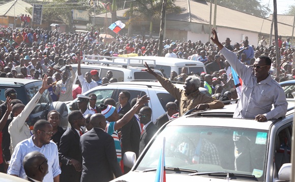 Chama cha Demokrasia na Maendeleo (CHADEMA), Mh. Edward Lowassa akipunga
