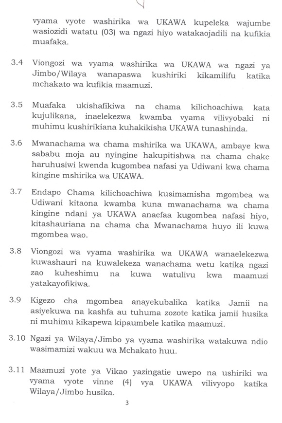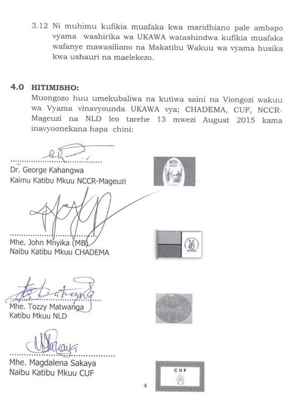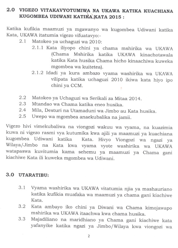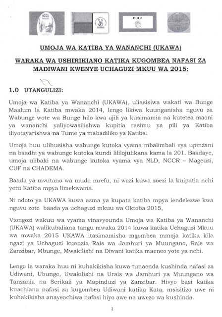 WARAKA WA UKAWA JUU YA MAKUBALIANO KUGOMBEA NAFASI ZA MADIWANI UCHAGUZI MKUU 2015